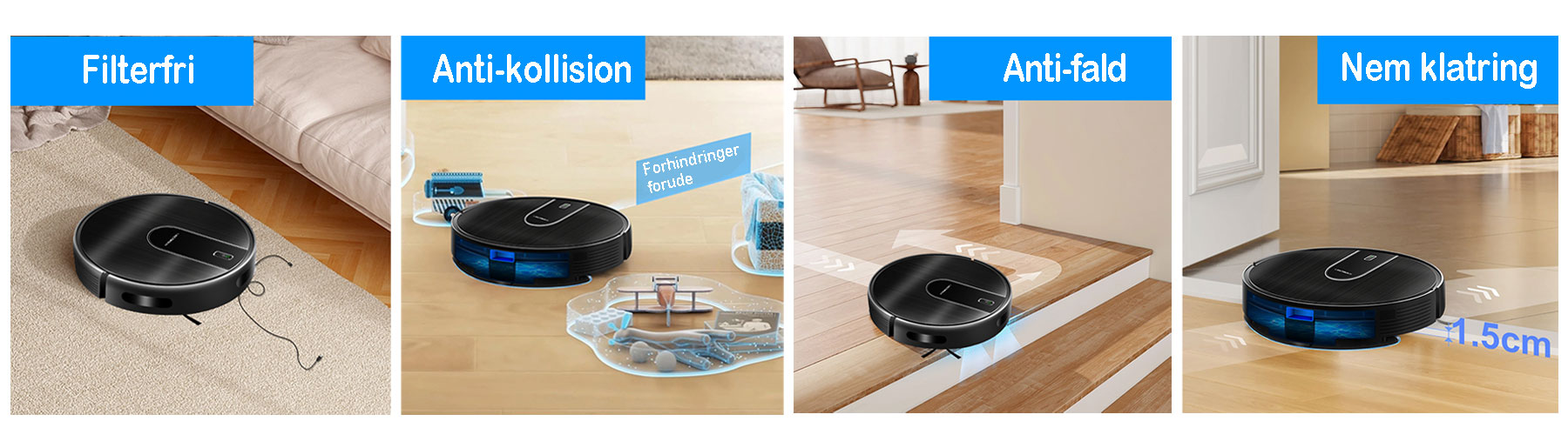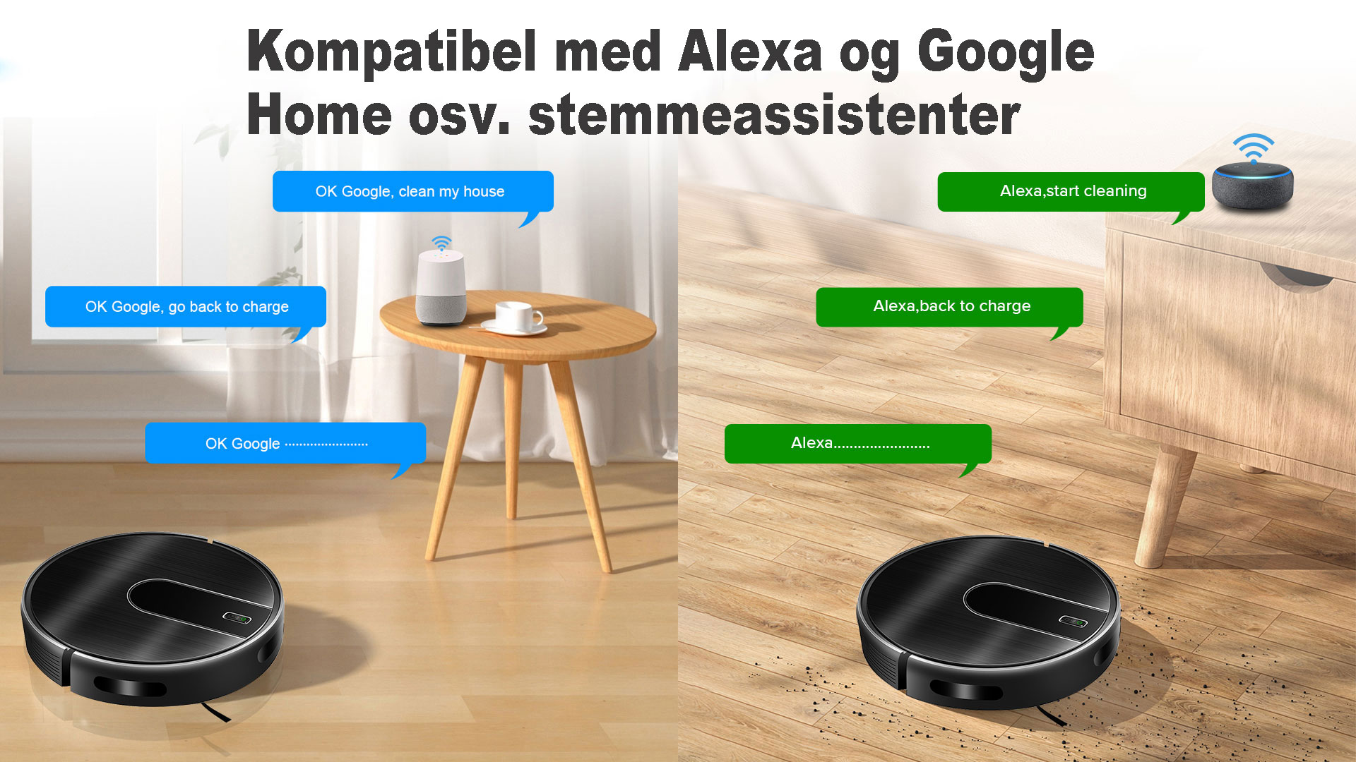 Den kan tilsluttes internettet og styres via en mobilapp. Du kan bruge appen til at starte rengøringen, indstille rengøringstiden, skifte mellem forskellige rengøringsprogrammer og tjekke den resterende batteritid. Derudover kan den styres via Alexa eller Google Home.Efter rengøringen vender den tilbage til det oprindelige punkt (opladningsstationen).